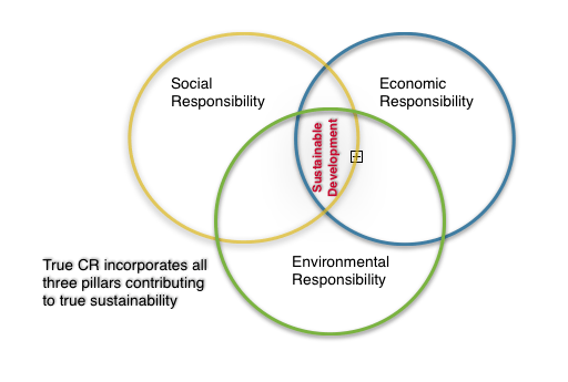 Corporate Responsibility (CR) is a broad and occasionally misinterpreted term. Corporate responsibility incorporates three main pillars and is much more than Ad hoc acts of kindness, employee involvement in beach clean ups and blood drives that are just micro responsibility initiatives within a much bigger scope of corporate responsibility.