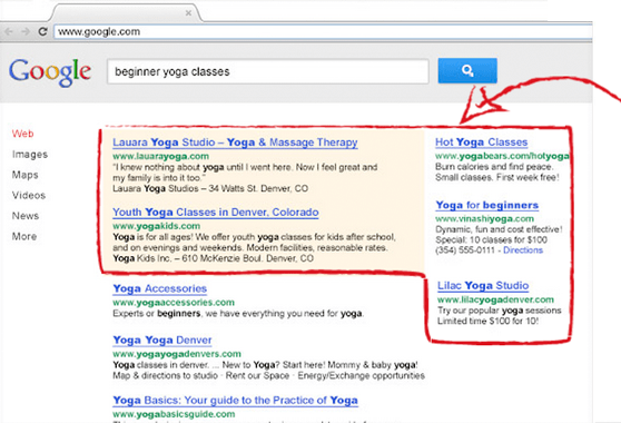 Adwords gives you the ability to appear on the front page of Google exactly at the point people are searching for what you’re offering.