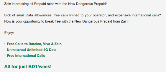 The destination URL for these ads is http://www.bh.zain.com/en/personal/mobile-plans/prepaid/dangerousprepaid. You can see a full image of page here.