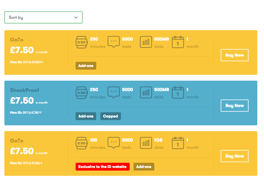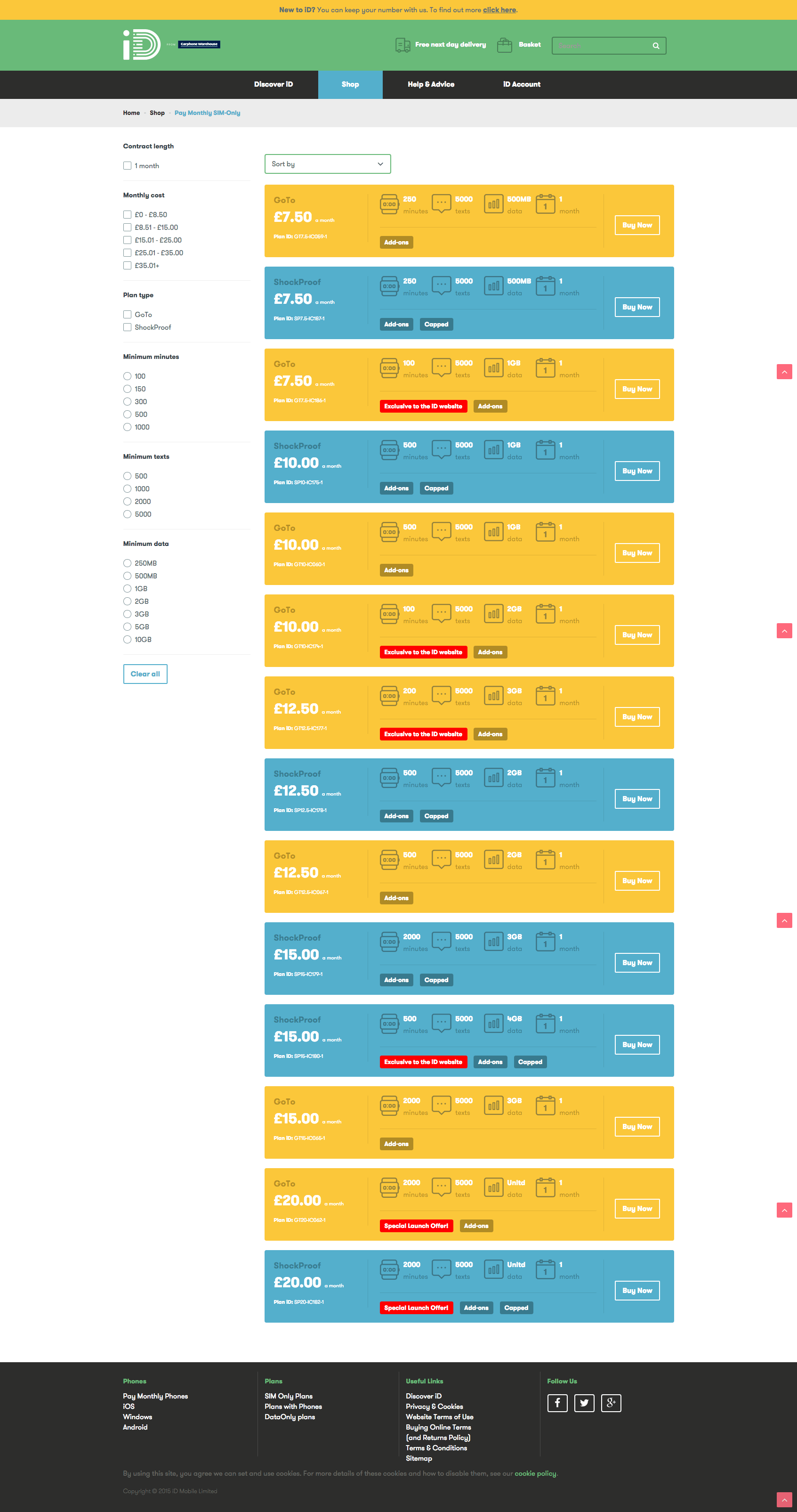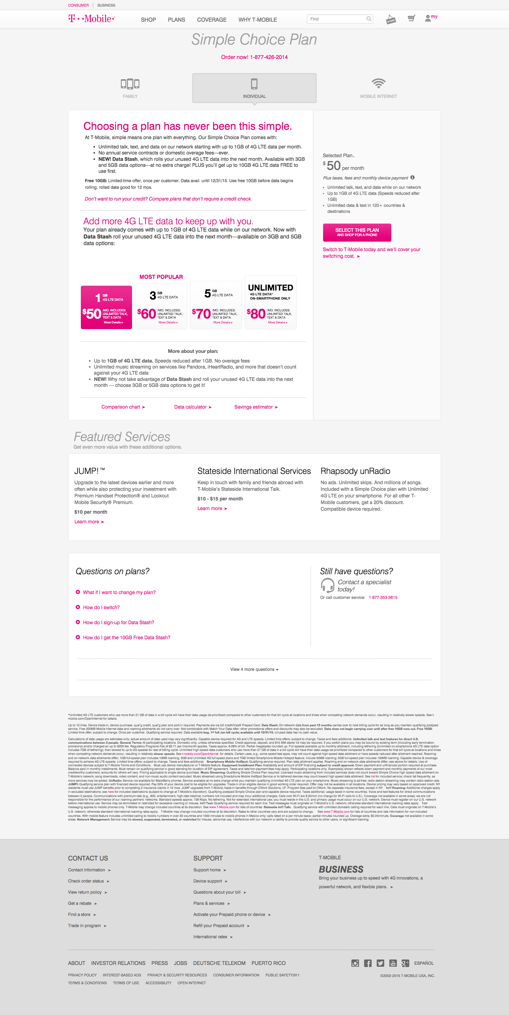 The ID Mobile page displays its plan data in clearly defined rows. On the plus side it’s a simple solution that gives the user the minimum required information easily digestible chunks. On the downside, this type of layout isn’t very economical space wise. This page has 14 rows and when you look at the full page it quickly becomes much less digestible.