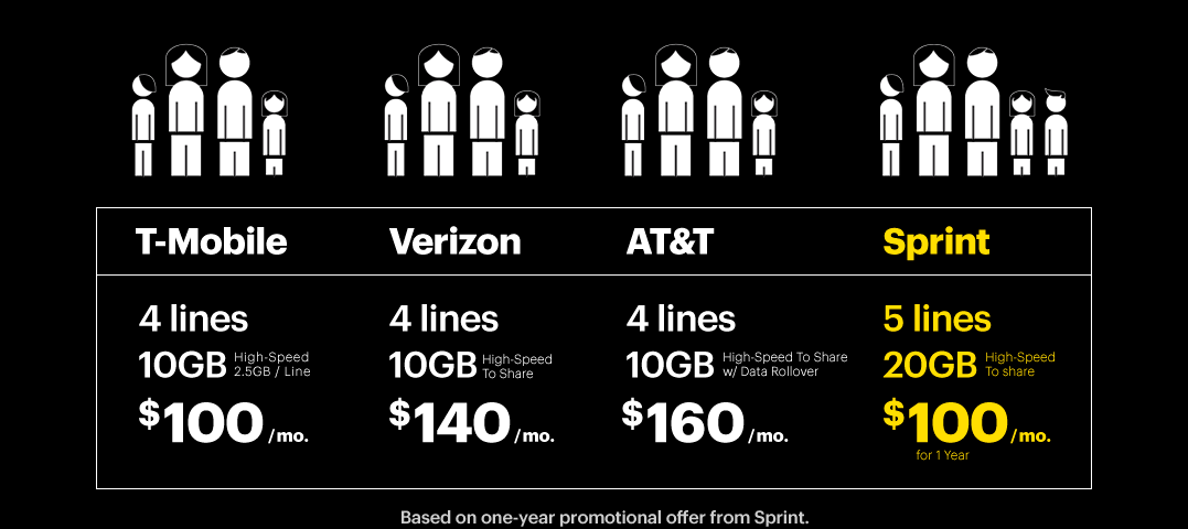 Sprint, like Verison and Zain, uses a table but makes it much easier to understand the benefits and what’s in the offer through a minimal amount text, icons, font size variation and colour.