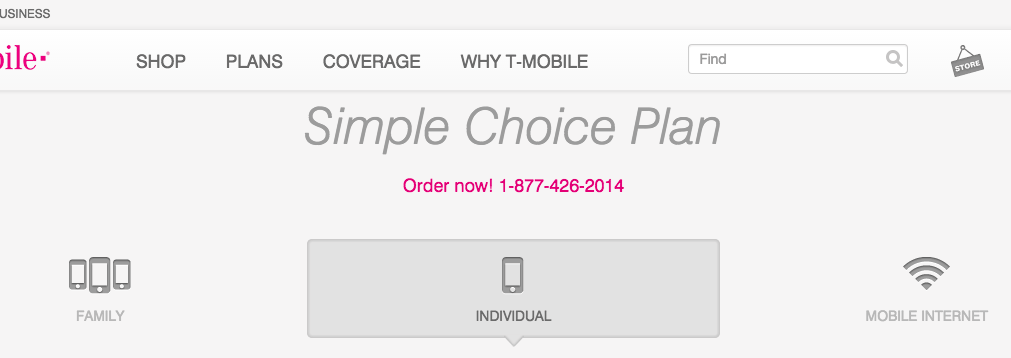 The comparison pages are for e-commerce so not directly comparable. But, for one of their landing pages T-mobile has placed the ‘visit a store’ call to action in the header along with a clearly defined persona and compelling image and copy. The ‘action’ element here is present in both the image and the CTA.